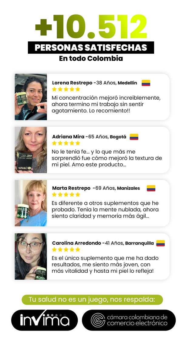 La mayoría de usuarios reportan más energía y claridad mental desde la primera semana. Los beneficios en la piel y elasticidad suelen aparecer con el uso continuo de 3 a 4 semanas.